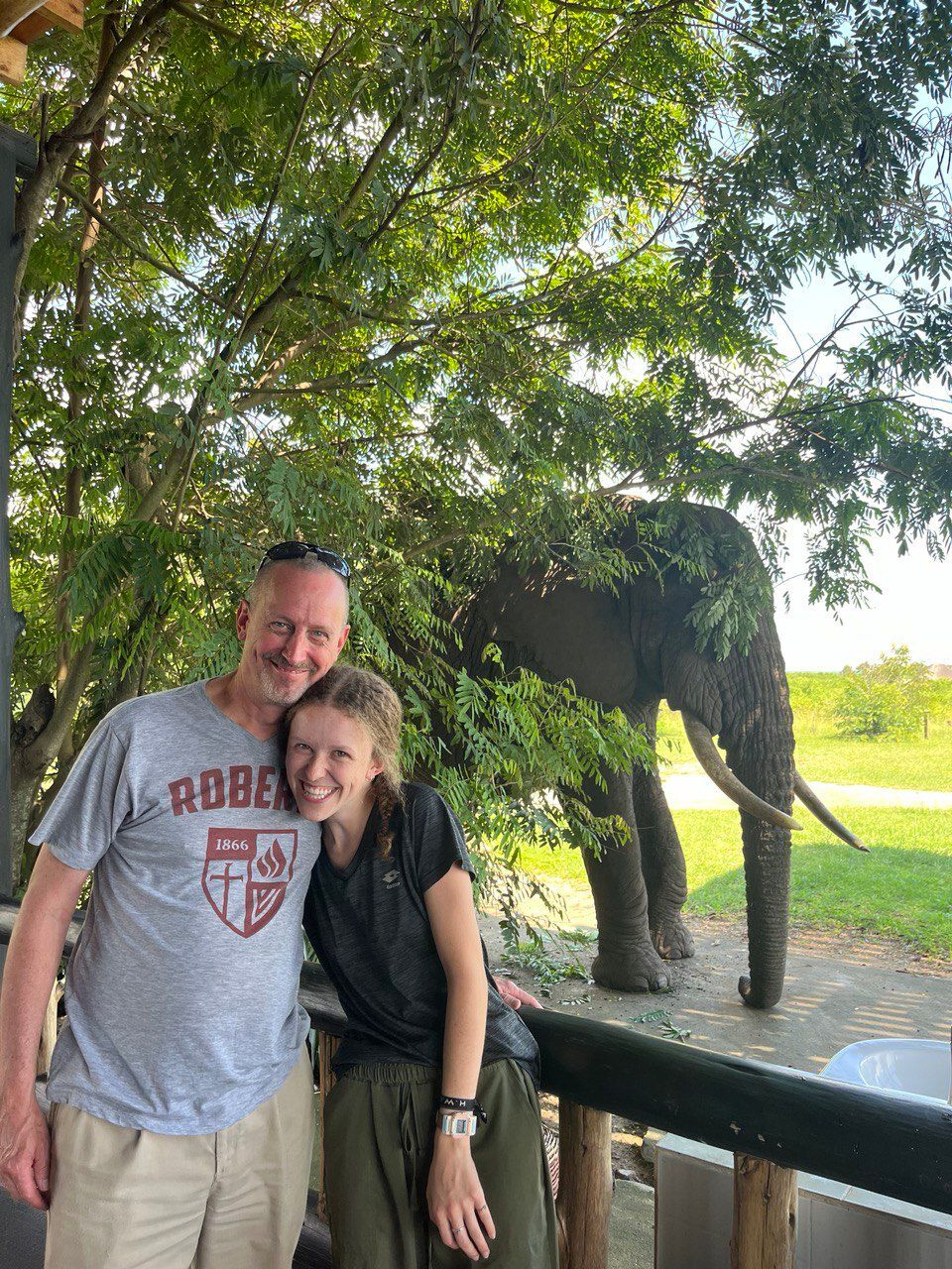 ![]() This was our first time ever traveling together! | ![]() Dad and Rev. John | ![]() Joel the elephant outside our hotel |