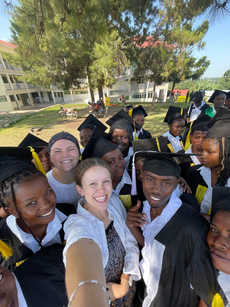 As we were driving one day we saw a tiny bit of a rainbow (which was surprising because it is currently dry season in Uganda, so rain is super uncommon) and Elise said “wow! I really want to see the full arch of a rainbow” and I said “well, we can ask!” We prayed a super quick prayer, and then didn’t think much of it. As we walked out of our room two hours later to go to dinner, I turned around to take a video of the trees, and saw this- a full arch. Such a tangible reminder that God hears our prayers!
